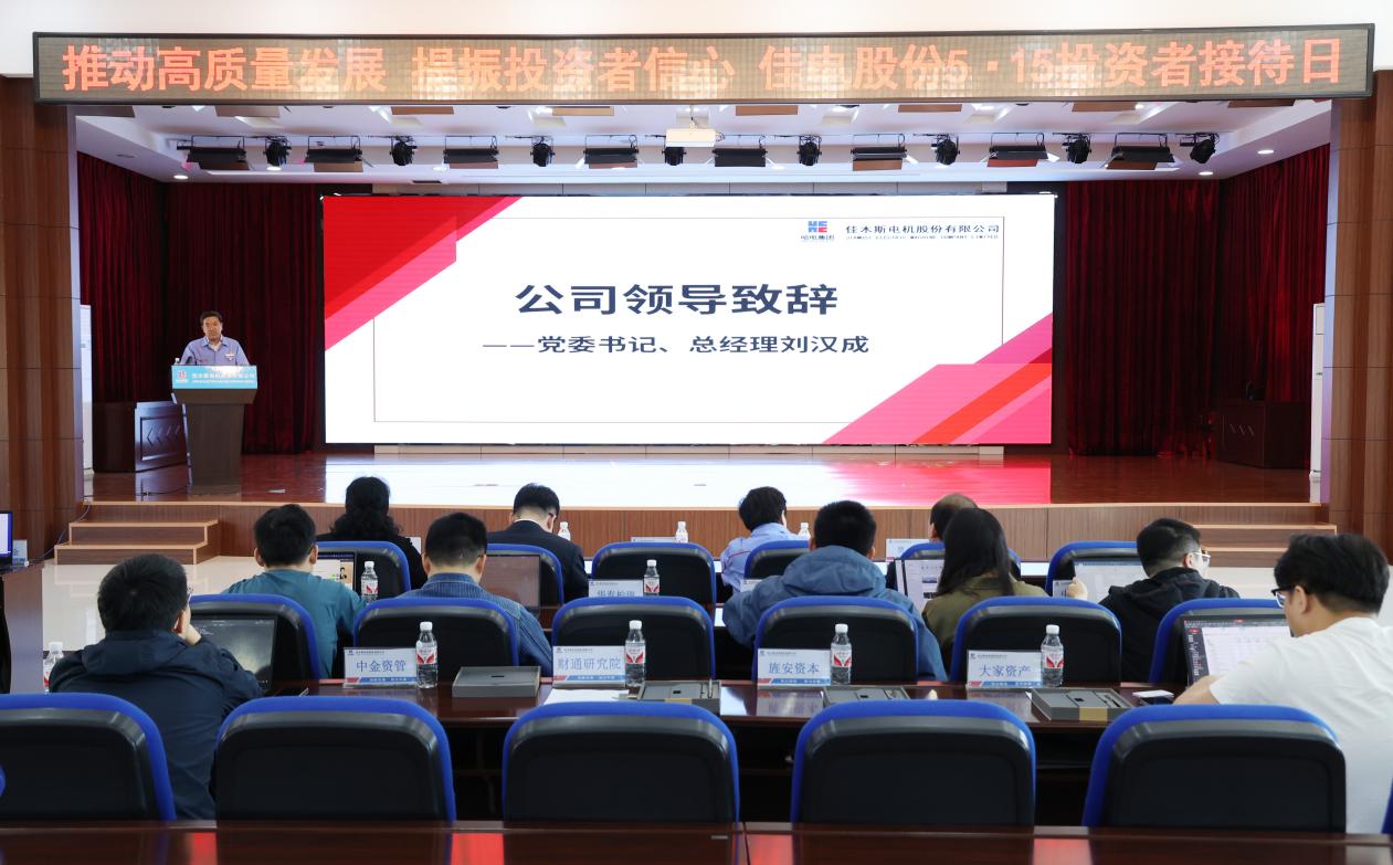 為全面貫徹落實(shí)黨的二十大精神,落實(shí)中央金融工作會(huì )議和新“國九條”相關(guān)部署,積極推進(jìn)上市公司投資者保護宣傳工作,根據黑龍江省證監局《關(guān)于開(kāi)展2024年“5?15全國投資者保護宣傳日”活動(dòng)的通知》要求,5月15日,哈電集團佳木斯電機股份有限公司(以下簡(jiǎn)稱(chēng)“佳電股份”)組織開(kāi)展了以“向‘新’轉變 向‘質(zhì)’而行”為主題的投資者接待日活動(dòng),方正證券、中信證券、華安基金、宏道投資等近30余家機構投資者走進(jìn)公司進(jìn)行交流互動(dòng)。佳電股份黨委書(shū)記、總經(jīng)理劉漢成出席會(huì )議并致辭,佳電股份總會(huì )計師韓思蒂、副總經(jīng)理鄭偉、動(dòng)裝公司黨委委員賈允參加活動(dòng)并圍繞主要產(chǎn)品、未來(lái)發(fā)展等方面內容與投資者進(jìn)行了深入交流,佳電股份董事會(huì )秘書(shū)王紅霞主持會(huì )議。