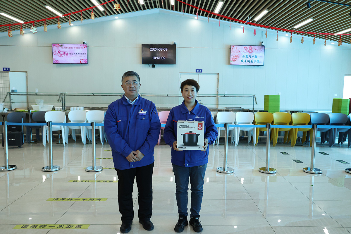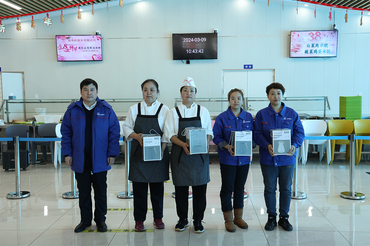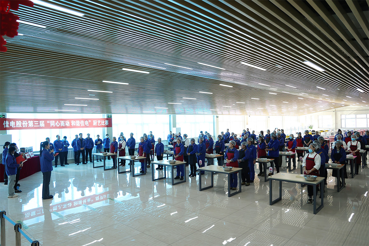 陽(yáng)春三月春意暖,巾幗奕奕展風(fēng)采。3月9日,哈電集團佳電股份,職工餐廳內伴隨著(zhù)一片歡聲笑語(yǔ),第三屆“同心而動(dòng) 和諧佳電”迎三八節廚藝比賽正式拉開(kāi)帷幕,共有來(lái)自各直屬工會(huì )的70余名女職工參加比賽,本次廚藝比賽包括切土豆絲和包餃子兩個(gè)項目