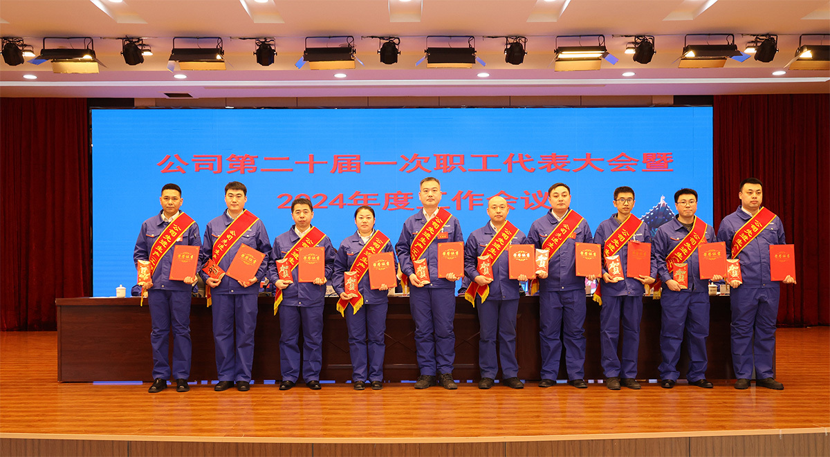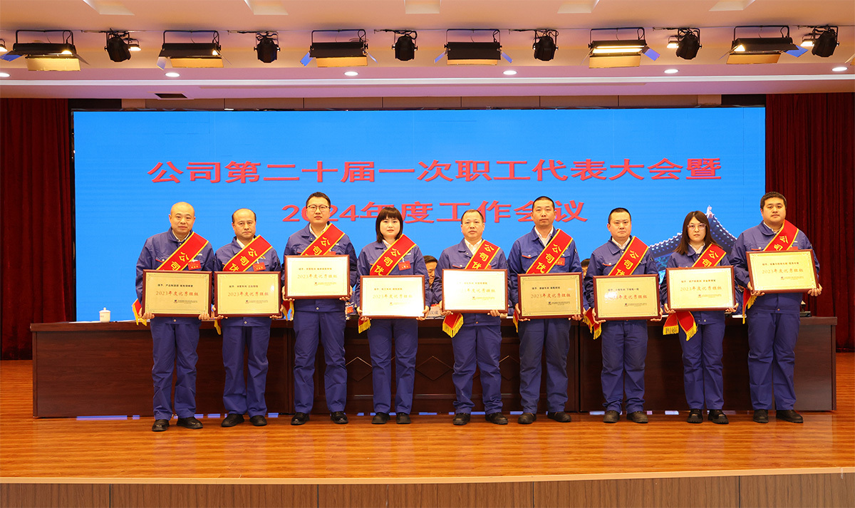 公司領(lǐng)導為獲得表彰的先進(jìn)個(gè)人和先進(jìn)集體代表頒獎