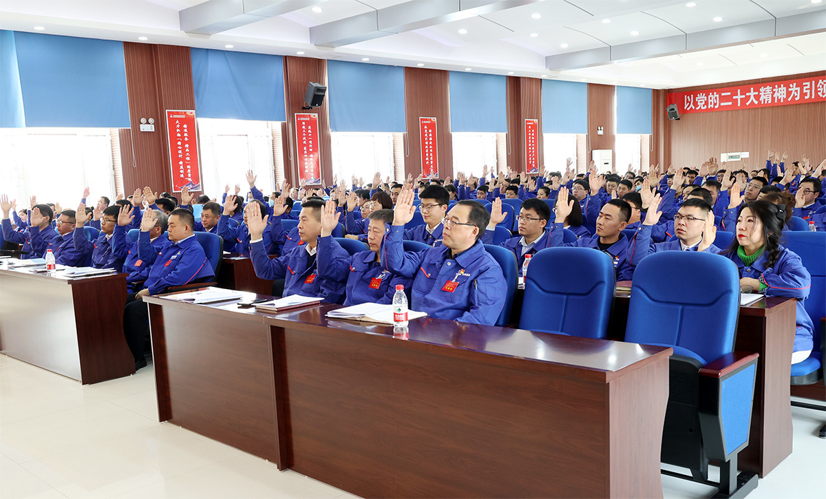 1月21日,哈電集團佳木斯電機股份有限公司(佳木斯電機廠(chǎng)有限責任公司)第二十屆一次職工代表大會(huì )暨2024年度工作會(huì )議勝利召開(kāi)。大會(huì )堅持以習近平新時(shí)代中國特色社會(huì )主義思想為指導,深入貫徹落實(shí)黨的二十大、二十屆二中全會(huì )和中央經(jīng)濟工作會(huì )議精神,貫徹落實(shí)集團公司黨委一屆九次全會(huì )和集團公司二屆一次職代會(huì )精神,總結2023年工作,查找不足,研判形勢,部署2024年重點(diǎn)工作,凝聚共識,堅定信心,匯聚合力,奮力開(kāi)啟佳電高質(zhì)量發(fā)展新華章。佳電股份領(lǐng)導班子成員劉漢成、劉亨、安文舉、潘波、于洪波、韓思蒂、鄭偉、歷銳出席會(huì )議。
