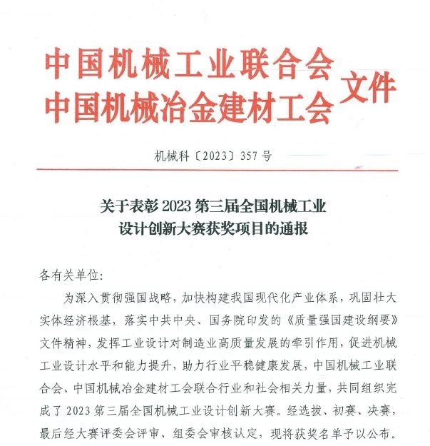全國機械工業(yè)設計創(chuàng )新大賽由中國機械工業(yè)聯(lián)合會(huì )、中國機械冶金建材工會(huì )聯(lián)合主辦,大賽以“設計創(chuàng )新、智造未來(lái)”為主題,旨在深入貫徹強國戰略,加快構建我國現代化產(chǎn)業(yè)體系,鞏固壯大實(shí)體經(jīng)濟根基,發(fā)揮工業(yè)設計對制造業(yè)高質(zhì)量發(fā)展的牽引作用,促進(jìn)機械工業(yè)設計水平和能力提升,助力行業(yè)平穩健康發(fā)展。