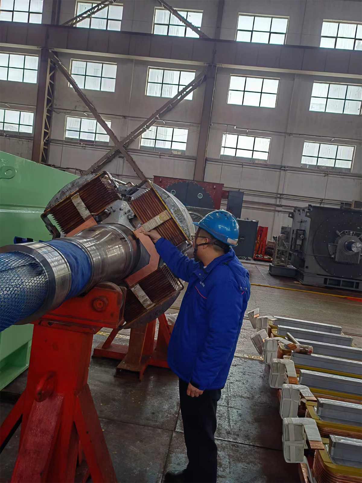 行遠自邇,篤行不怠。設計部同步機室王洪彬積極配合正壓外殼型無(wú)刷勵磁同步電動(dòng)機TZYW5700-4/1730新產(chǎn)品制造的關(guān)鍵工序工作,為高質(zhì)量完成新產(chǎn)品交付提供了強有力的保障。