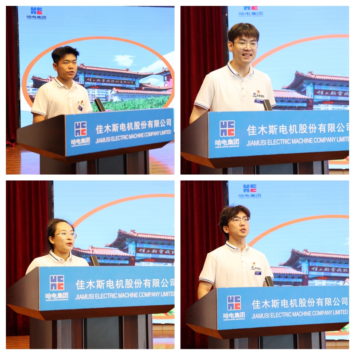 在入職儀式上,黃少雷、王艷章、左巖雪、樊傳平等4名新員工代表進(jìn)行發(fā)言。他們講述了認識佳電、融入佳電的過(guò)程和感受,從他們身上看到了新一代佳電青年勤于學(xué)習、務(wù)實(shí)肯干的精神面貌,感受到了新一代佳電青年奮發(fā)進(jìn)取、追求進(jìn)步的蓬勃朝氣。