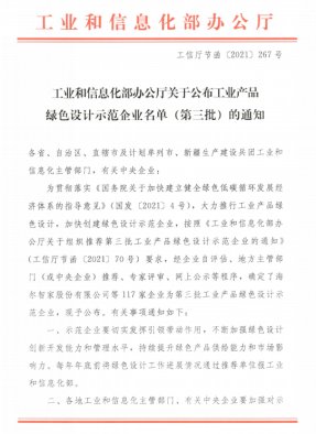 2020-2022年獲國家綠色產(chǎn)品設計目錄