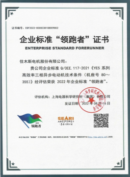 2020年至今,佳電股份研發(fā)的YBX4系列高效率隔爆型三相異步電動(dòng)機、YBX3系列高效率隔爆型三相異步電動(dòng)機、YE4系列高效率三相異步電動(dòng)機、YE3系列高效率三相異步電動(dòng)機、YBX3系列高效率高壓隔爆型三相異步電動(dòng)機、YFBX4系列高效率粉塵防爆三相異步電動(dòng)機、TBYC系列隔爆型永磁三相同步電動(dòng)機、TYC系列永磁三相同步電動(dòng)機、YJKK系列高效率高壓三相異步電動(dòng)機、YJKS系列高效率高壓三相異步電動(dòng)機、YJ系列高效率高壓三相異步電動(dòng)機等共18個(gè)系列產(chǎn)品獲得國家“綠色設計產(chǎn)品”稱(chēng)號。T(B)YC系列(隔爆型)永磁三相同步電動(dòng)機技術(shù)條件(機座號80~400)、 YE5系列高效率三相異步電動(dòng)機技術(shù)條件(機座號80~355)等8個(gè)系列企業(yè)標準獲得國家級企業(yè)標準“領(lǐng)跑者”稱(chēng)號。佳電股份是電動(dòng)機行業(yè)綠色產(chǎn)品、企業(yè)標準領(lǐng)跑者全面覆蓋的企業(yè),涵蓋了佳電股份主導的高低壓系列產(chǎn)品,進(jìn)一步保障綠色電動(dòng)機產(chǎn)品的市場(chǎng)供應。