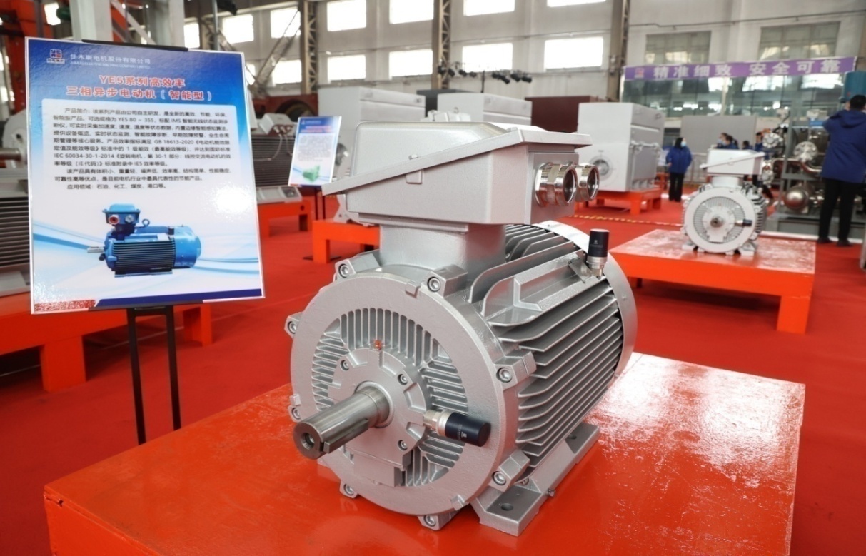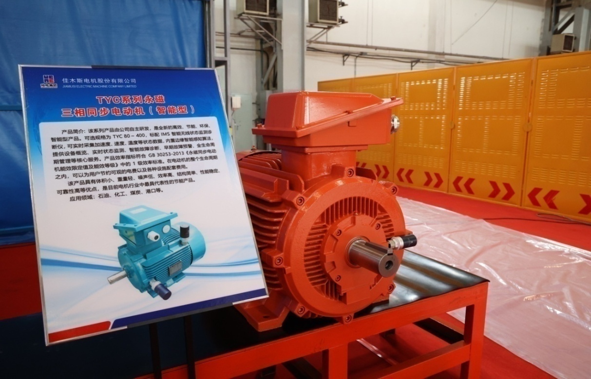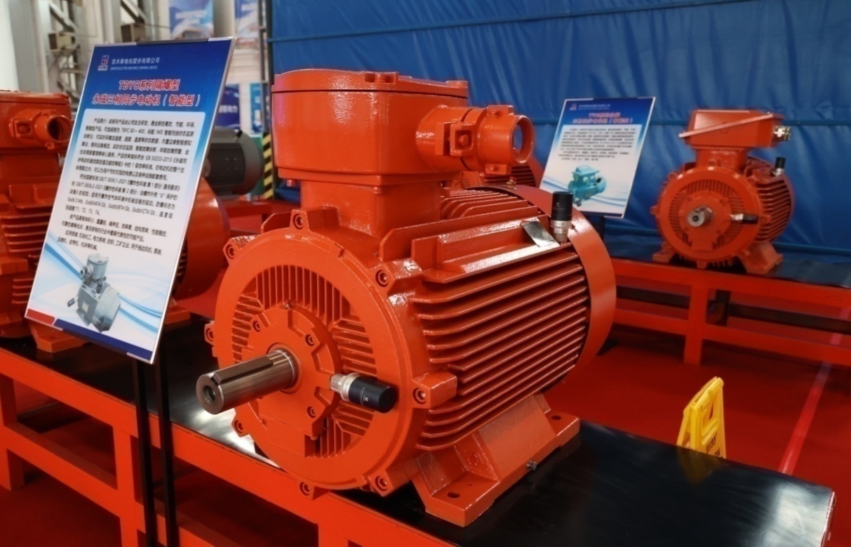本次發(fā)布會(huì )展出的TBYC系列高效率隔爆型永磁三相同步電動(dòng)機(智能型)、TYC系列永磁三相同步電動(dòng)機(智能型)產(chǎn)品,依靠永磁體所提供的磁能替代了傳統電機電勵磁產(chǎn)生的磁能,具備電機損耗低、運行可靠性高的特點(diǎn)。在負載較低時(shí),產(chǎn)品仍可保持較高的運行效率和功率因數,解決了機械設備在低負荷時(shí)能耗消耗大的問(wèn)題。其中部分規格可配備智能監測終端產(chǎn)品,可實(shí)時(shí)采集加速度、速度、溫度等狀態(tài)數據,內置邊緣智能感知算法,可提供設備概覽、實(shí)時(shí)狀態(tài)監測、智能故障診斷、早期故障預警、全生命周期管理等核心服務(wù)。同時(shí),產(chǎn)品效率指標能夠滿(mǎn)足1級能效要求,在電動(dòng)機的整個(gè)生命周期內,可以為用戶(hù)節約可觀(guān)的電費以及各種設施配套費用,是工信部“能效之星”推薦產(chǎn)品,可應用于石油化工、電力系統、紡織、工礦企業(yè)以及拖動(dòng)風(fēng)機、泵類(lèi)等機械。
