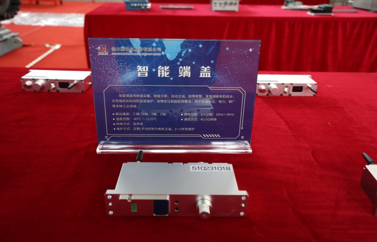 此次發(fā)布會(huì )展出的智能端蓋,端蓋內置發(fā)電機,為邊緣智能終端供電,無(wú)需外接電源,解決續航問(wèn)題,邊緣智能終端嵌入安裝端蓋中,實(shí)時(shí)采集振動(dòng)、溫度數據,數據采集更精準,對多種故障實(shí)現早期預警及智能診斷,該端蓋專(zhuān)為各類(lèi)高、低壓電動(dòng)機設計,適用于各類(lèi)工業(yè)場(chǎng)景。