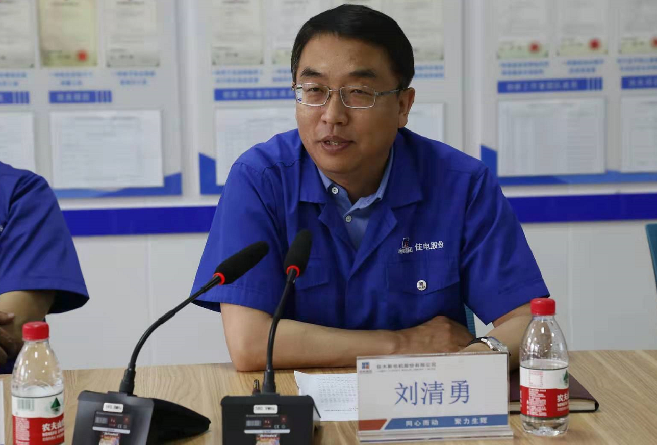 在聽(tīng)取各勞模和工匠人才創(chuàng )新工作室領(lǐng)銜人的經(jīng)驗交流后,劉清勇代表公司對市總工會(huì )一行蒞臨指導表示誠摯的歡迎,并對多年來(lái)給予佳電股份的支持和幫助表示了衷心的感謝。