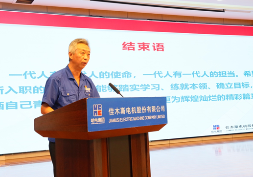 劉清勇講述了公司的發(fā)展歷程、未來(lái)戰略方向及對青年人才的殷切希望。他指出,公司作為上市公司,特種電機的龍頭企業(yè),電機行業(yè)的領(lǐng)航者,公司的平臺是足夠廣闊的,會(huì )給每個(gè)有追求的人搭建實(shí)現人生價(jià)值的舞臺。劉清勇寄語(yǔ)新入職大學(xué)生,“一代人有一代人的使命,一代人有一代人的擔當。希望新入職的大學(xué)生,能夠踏實(shí)學(xué)習、練就本領(lǐng)、確立目標,揮灑自己青春的汗水,去書(shū)寫(xiě)佳電更為輝煌燦爛的精彩篇章”。