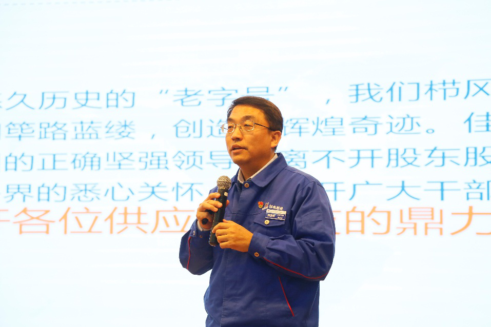 會(huì )上,黨委副書(shū)記、總經(jīng)理姜清海代表佳電股份致歡迎辭,對供應商代表蒞臨大會(huì )表示熱烈歡迎。