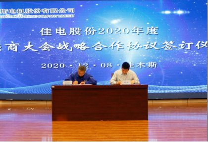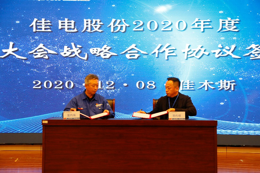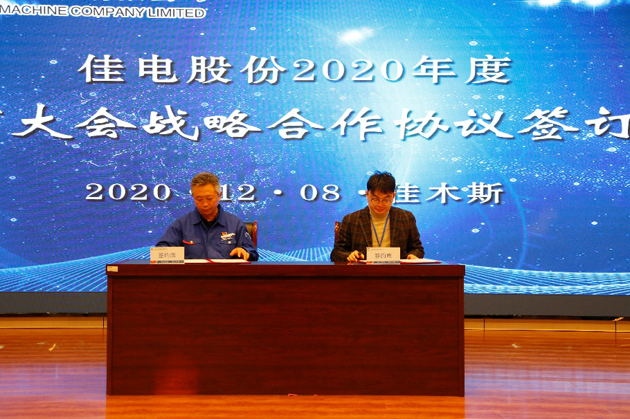 姜清海代表佳電股份與杭州華光、遼寧東港、申科股份三家戰略供應商代表簽訂戰略合作協(xié)議。