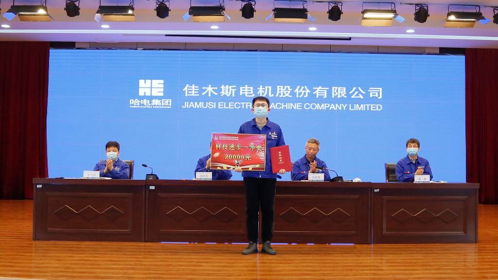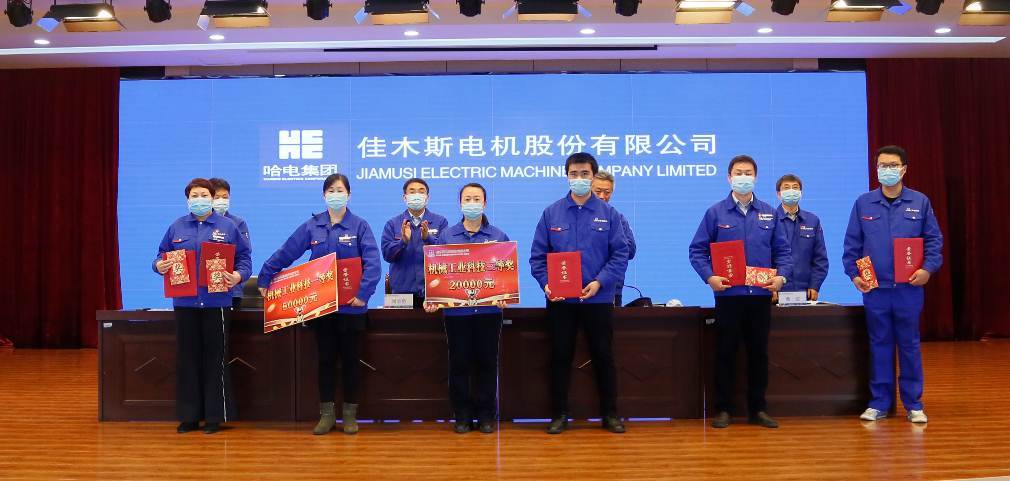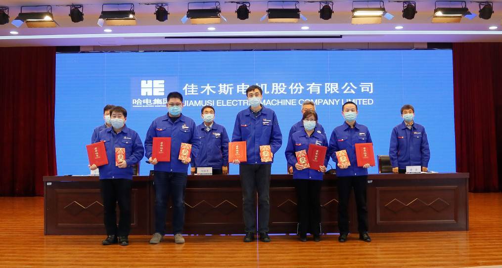 副總經(jīng)理安文舉宣讀了《哈爾濱電氣集團佳木斯電機股份有限公司關(guān)于2020年科技工作表彰獎勵的決定》,表彰了為公司科技事業(yè)做出突出貢獻的先進(jìn)集體和先進(jìn)個(gè)人,并為獲獎代表頒獎。