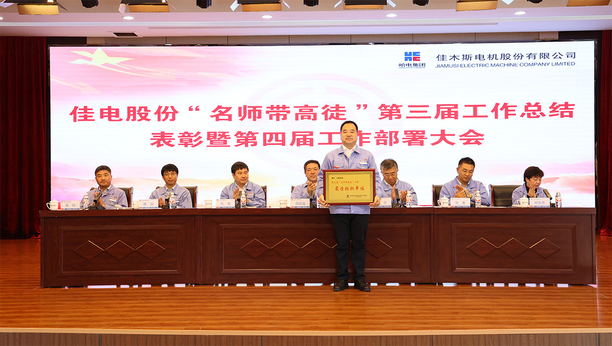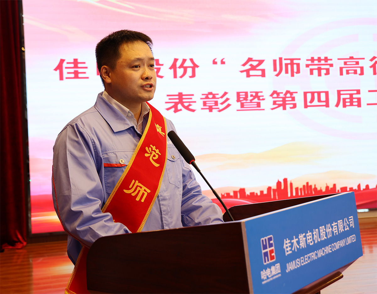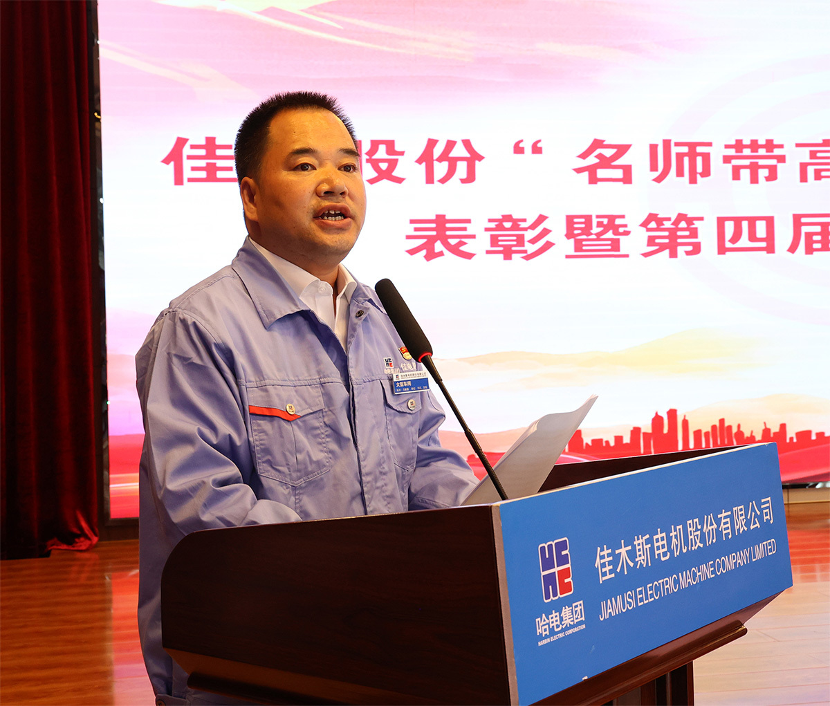 為深入學(xué)習貫徹黨的二十大和二十屆三中全會(huì )精神,貫徹落實(shí)習近平總書(shū)記關(guān)于產(chǎn)業(yè)工人隊伍建設改革的重要指示精神,大力弘揚“勞模精神、勞動(dòng)精神、工匠精神”,充分發(fā)揮生產(chǎn)技術(shù)骨干人才的“傳幫帶”作用,9月27日,哈電集團佳木斯電機股份有限公司(以下簡(jiǎn)稱(chēng)“佳電股份”)召開(kāi)“名師帶高徒”第三屆工作總結表彰暨第四屆工作部署大會(huì )。佳電股份黨委書(shū)記、總經(jīng)理劉漢成出席會(huì )議并講話(huà),佳電股份黨委副書(shū)記、工會(huì )主席劉亨主持會(huì )議,佳電股份領(lǐng)導班子成員出席會(huì )議。