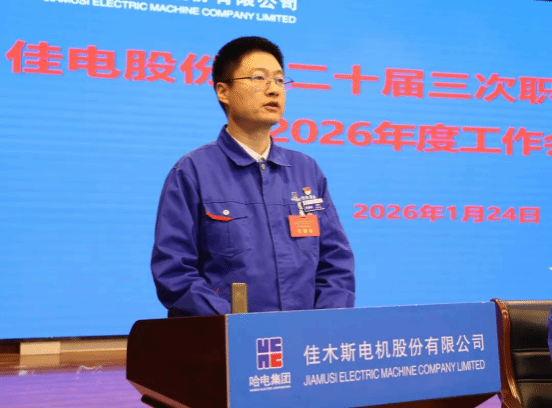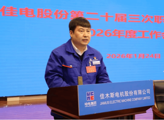 1月24日,哈爾濱電氣集團佳木斯電機股份有限公司(以下簡稱“佳電股份”)第二十屆三次職工代表大會暨2026年度工作會議勝利召開。大會堅持以習近平新時代中國特色社會主義思想為指導,深入學習貫徹習近平總書記對中央企業(yè)工作作出的重要指示精神,全面貫徹黨的二十大、二十屆歷次全會精神和中央經(jīng)濟工作會議精神,貫徹落實集團公司黨委二屆二次全會和二屆三次職代會精神,總結工作,研判形勢,統(tǒng)籌部署2026年重點任務,動員全體干部職工堅定信心、迎難而上,以更高站位、更實舉措、更嚴作風,推動企業(yè)高質量發(fā)展、發(fā)展新質生產(chǎn)力邁上新臺階,為打造世界一流電驅動系統(tǒng)制造和服務企業(yè)筑牢根基。佳電股份領導班子成員出席會議。