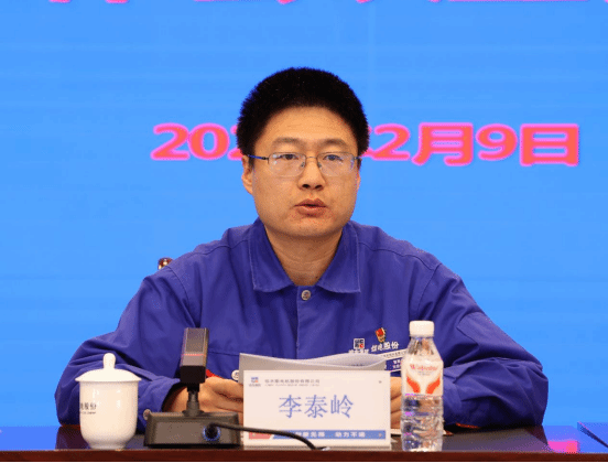 佳電股份董事長、黨委書記李泰嶺作講話。