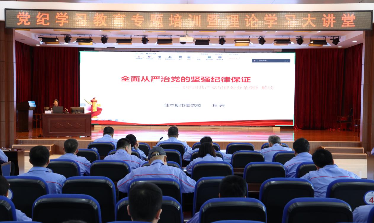 為深入學(xué)習貫徹習近平總書(shū)記關(guān)于開(kāi)展黨紀學(xué)習教育的重要講話(huà)和重要指示精神,認真學(xué)習貫徹《中國共產(chǎn)黨紀律處分條例》,按照公司黨委工作安排,5月27日,哈電集團佳木斯電機股份有限公司(以下簡(jiǎn)稱(chēng)“佳電股份”)開(kāi)展黨紀學(xué)習教育專(zhuān)題培訓暨理論學(xué)習大講堂,邀請佳木斯市委黨校教授程巖以《全面從嚴治黨的堅強紀律保證》為題作專(zhuān)題培訓,佳電股份400余名黨員通過(guò)現場(chǎng)或視頻會(huì )議方式參加培訓。