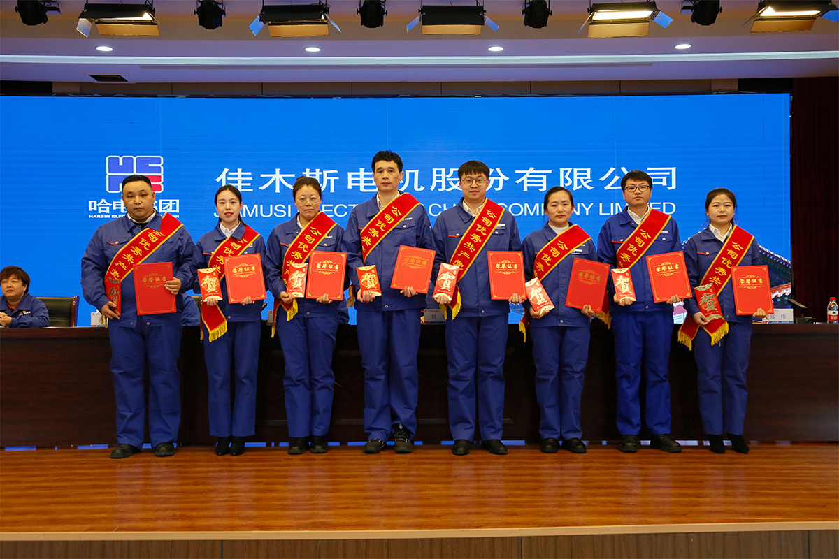 佳電股份中層領(lǐng)導人員、中層助理,黨建工作部、紀委辦公室、巡察辦公室全體人員,各直屬黨組織委員、各直屬工會(huì )主席、各直屬團組織書(shū)記、黨外人士代表以及受到表彰的先進(jìn)集體代表和先進(jìn)個(gè)人等200余人參加會(huì )議。蘇州佳電永磁電機科技有限公司、先進(jìn)電機技術(shù)有限公司以視頻會(huì )議形式參加會(huì )議。