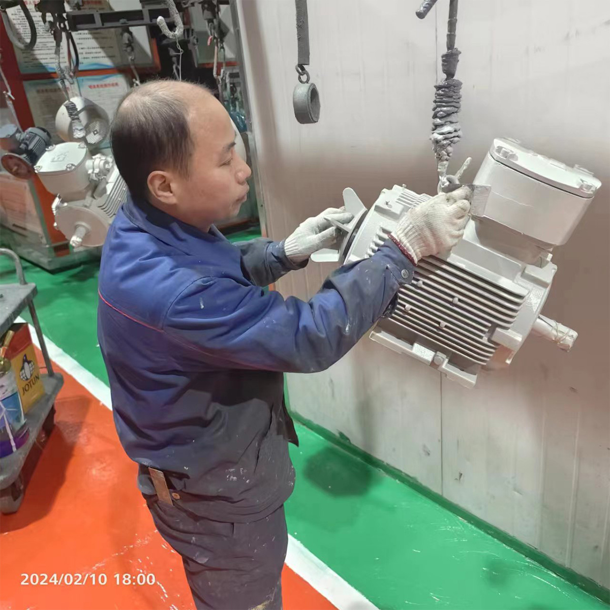 噴包車(chē)間噴漆工張永剛、孟憲武、劉安華、郭鳳臣等職工,在春節期間,放棄與家人的團聚,堅守、奮斗在各自崗位上,搶制項目電機噴漆進(jìn)度,用行動(dòng)詮釋著(zhù)責任和使命。