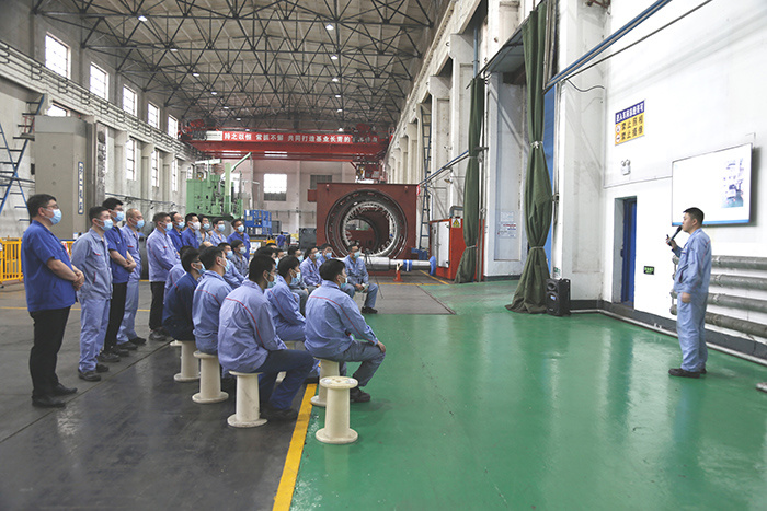 “全國勞動(dòng)模范”、黑龍江省“龍江大工匠”、佳電股份首席技師、大型車(chē)間裝配工別林講授了《滑動(dòng)軸承刮研理論知識》,把各種類(lèi)型的軸瓦轉化成清晰明了的結構組圖,將軸瓦油楔控油、油膜剛度、旋轉速度、刮研技巧與間隙、緊力控制等技術(shù)要點(diǎn)與關(guān)聯(lián)影響進(jìn)行了深入淺出的講解和提煉,干貨滿(mǎn)滿(mǎn)令現場(chǎng)職工受益匪淺。
