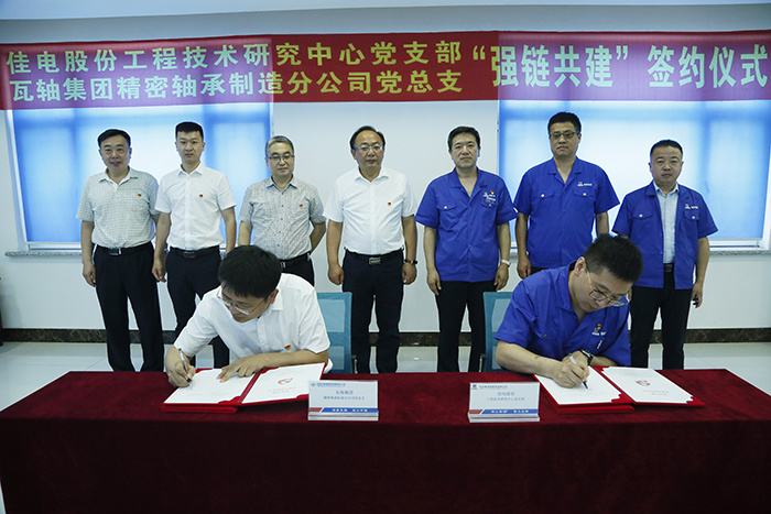 為深入貫徹落實(shí)哈電集團“三級書(shū)記抓質(zhì)量”工作要求,深入開(kāi)展“強黨性 精技術(shù) 提質(zhì)量 優(yōu)服務(wù)”主題黨日系列活動(dòng),積極向供應鏈延伸加大黨建共建力度,以黨建引領(lǐng)促進(jìn)技術(shù)水平和產(chǎn)品質(zhì)量提升,近日,哈電集團佳電股份工程技術(shù)研究中心黨支部與瓦房店軸承集團精密軸承制造分公司黨總支開(kāi)展以“強鏈共建”為主題的聯(lián)建共建活動(dòng)。并簽訂黨建共建協(xié)議。佳電股份黨委副書(shū)記劉漢成、瓦軸集團黨委副書(shū)記孫世成出席簽約儀式。瓦軸集團代表在公司領(lǐng)導陪同下參觀(guān)了企業(yè)展廳和生產(chǎn)車(chē)間。