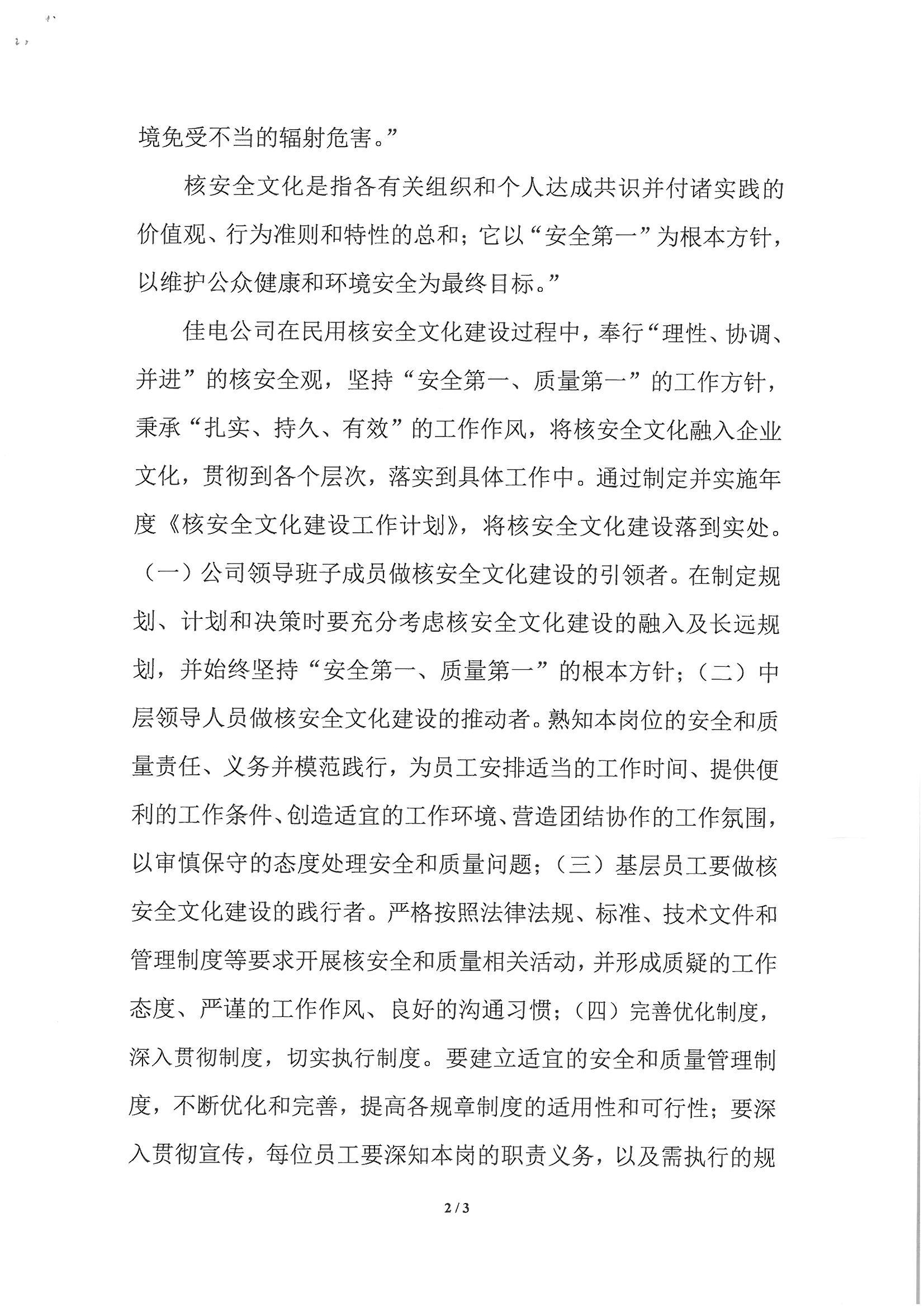 《佳木斯電機股份有限公司核安全文化政策聲明》