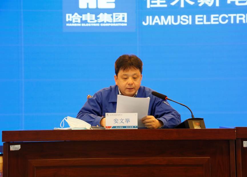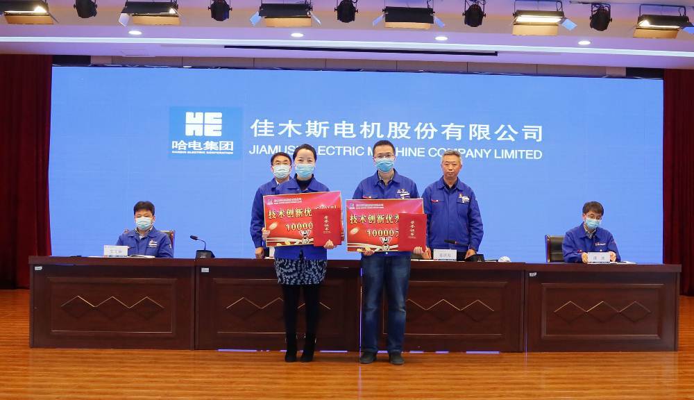 副總經(jīng)理安文舉宣讀了《哈爾濱電氣集團佳木斯電機股份有限公司關(guān)于2020年科技工作表彰獎勵的決定》,表彰了為公司科技事業(yè)做出突出貢獻的先進(jìn)集體和先進(jìn)個(gè)人,并為獲獎代表頒獎。